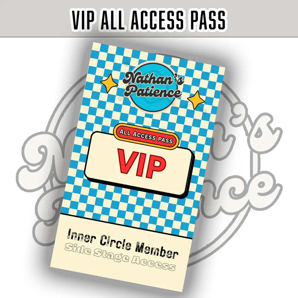 “VIP - Nathan's Patience Inner Circle” Laminated All Access / Backstage Pass - Can be used for backstage/side stage access at our live performances. (Limited Access & Availability Per Show - Prior Approval Required)